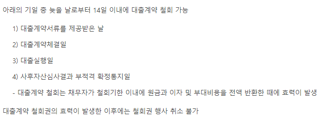 대출계약 철회 및 기타 유의 사항