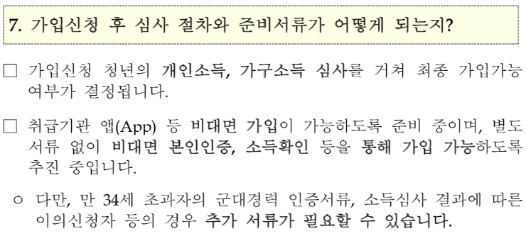 ㅇ (가입심사) 취급기관 앱을 통해 비대면*으로 매월 청년도약계좌 가입을 신청할 수 있으며, 개인소득과 가구소득 심사를 병행합니다.