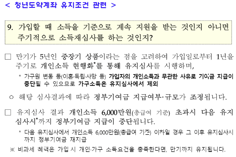 ㅇ (유지심사) 가입일로부터 1년을 주기로 개인소득*을 현행화하여 기여금 지급여부와 규모를 조정할 계획입니다.