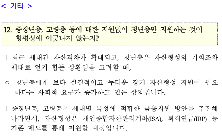 □ 또한, 청년도약계좌 외에도 청년의 자산형성을 지원하는 상품들을 운영·지원해 나가겠습니다.