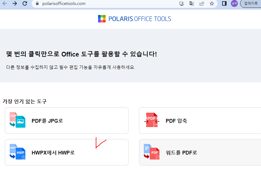 1. https://www.polarisofficetools.com/ 에 접속합니다.