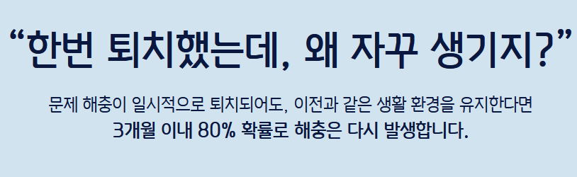 A. 개미를 자주 목격했다는 것은 이미 집 안에 군체를 이루고 서식하며 여왕개미가 자리잡고 있을 확률이 높습니다. 먹이활동을 나간 일개미가 죽어 돌아오지 않으면 서식처에 있는 여왕개미는 감소한 개체수만큼 알을 더 많이 낳아 일정 수준의 서식밀도를 유지하기 때문에 임시방편으로 사용하는 약으로는 근본적인 해결을 할 수 없습니다. 여왕개미를 완벽하게 제거해야 하는 이유입니다.