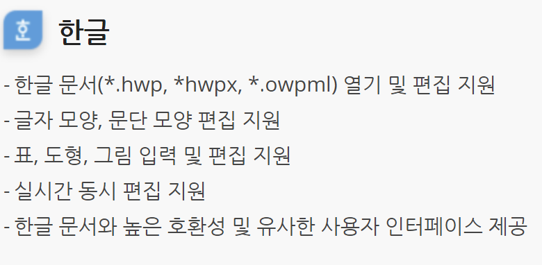 한컴오피스 웹을 통해 별도의 설치없이 웹 브라우저에서 자유로운 문서 편집과 실시간 동시 협업 기능을 제공합니다.