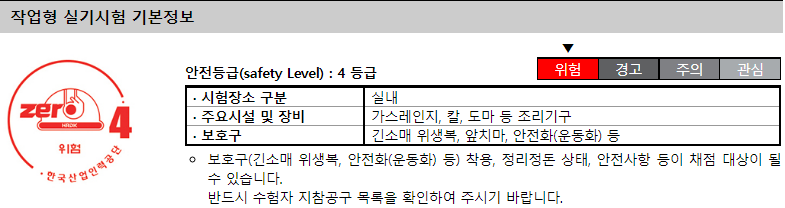 복어조리기능사 시험은 안전등급 4 레벨로 꼭 보호구랑 수험생 지참 공구 목록을 확인하여 챙겨가야 합니다.