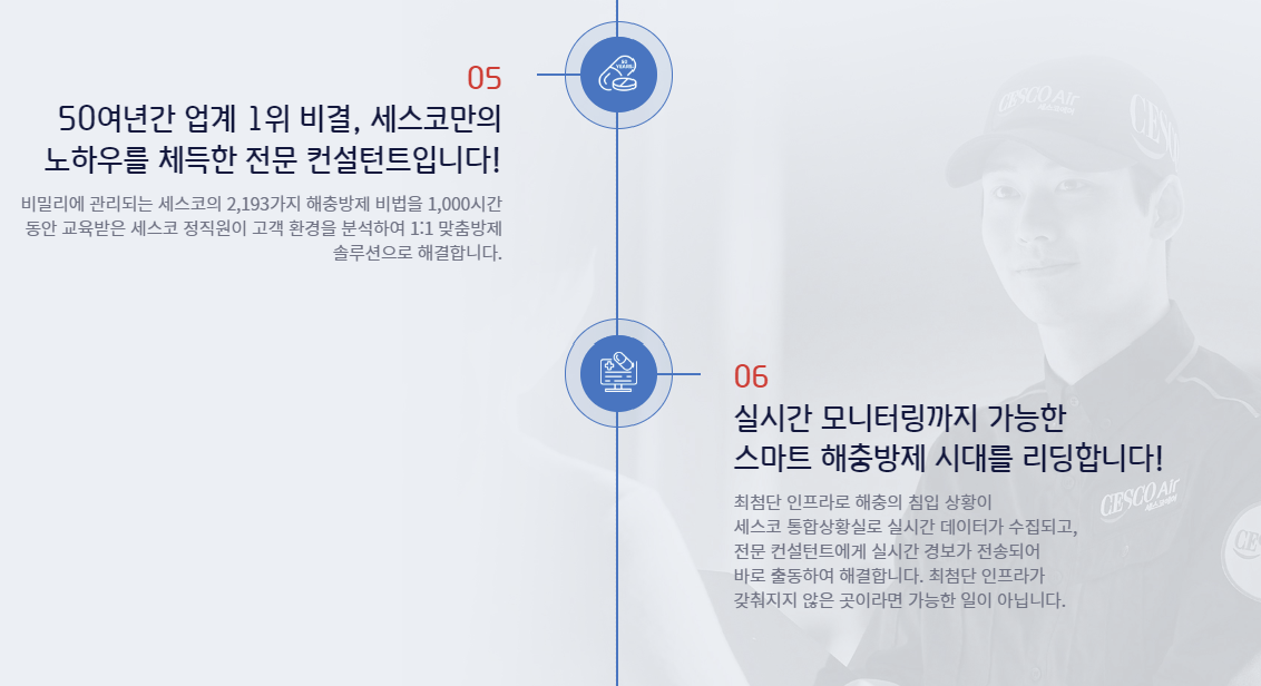 - 세스코의 전문가가 방제 후에도 관리와 보증을 해줍니다.