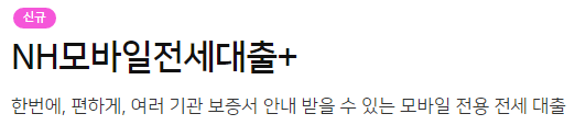 스마트폰 어플을 설치한 후 상품몰에 들어가 'NH모바일전세대출+'를 신청하면 신청가능합니다.