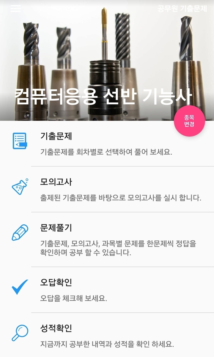 *컴퓨터 응용밀링 기능사와 시험과목이 같습니다.