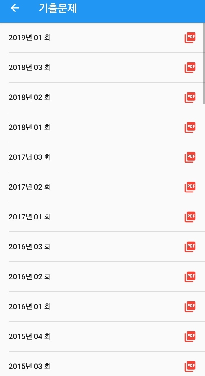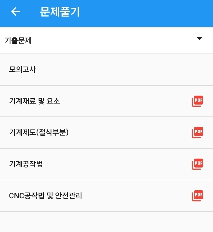 어플을 이용하여 연도별 필기 기출문제와 모의고사 등 여러 유형의 문제를 풀고 오답 확인까지 가능합니다.