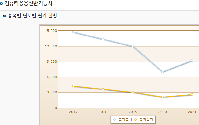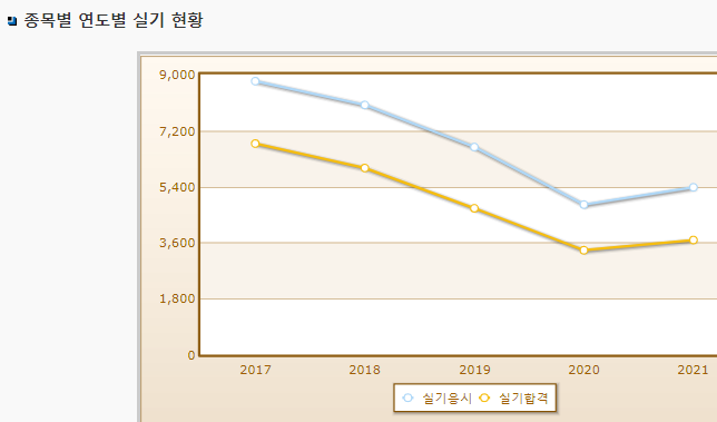 보시다시피 필기시험 합격률이 엄청 낮은 편이며 , 실기시험의 경우 합격률은 높게 나옵니다.