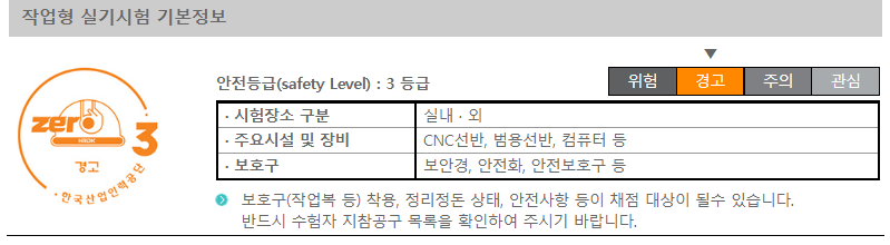 위 시험은 안전 레벨 3등급의 시험으로 보호구와 수험자 지참 공구를 챙겨가시지 않으면,