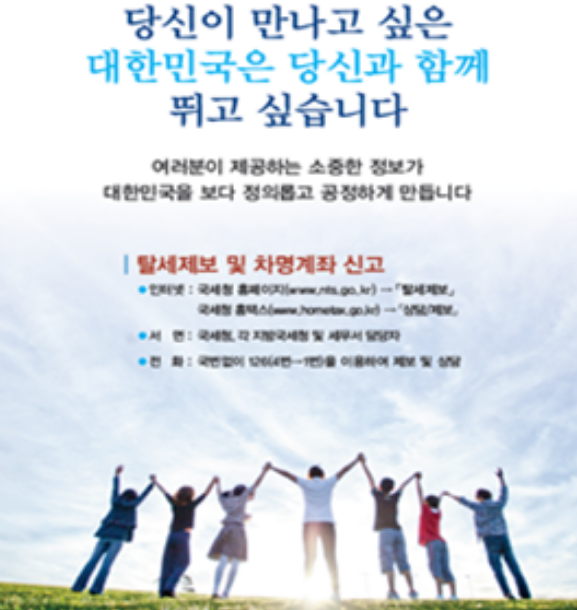 체납자의 은닉재산 소재를 알고 있다면, 신고자의 신원에 대한 비밀 보장은 철저하니 온라인으로 탈세제보를 신청하거나 , 국세청과 지방국세청 및 세무서에 서면으로 신고하거나 ARS 126번으로도 가능합니다.