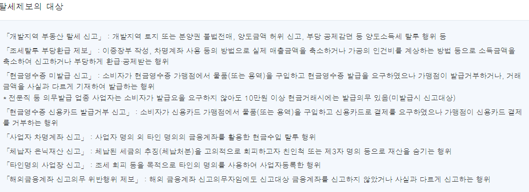 국세청>국민소통>국세청100배 활용하기 가이드맵> 탈세제보 (nts.go.kr)