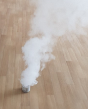 - 캔을 적색 부분이 아래로 오게 하여 물이 담긴 플라스틱 용기에 넣으세요. 그러면 연기가 올라오기 시작합니다.