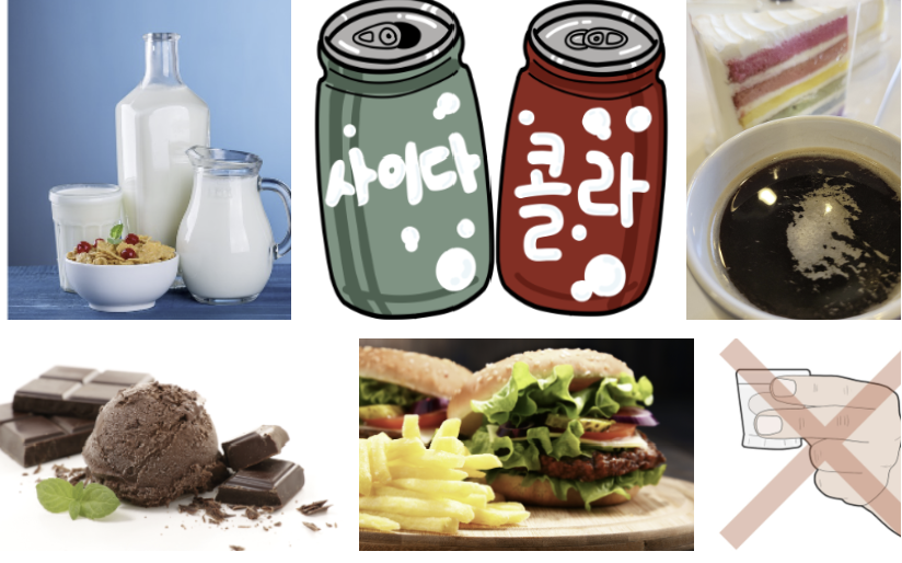 - 니코틴, 알코올, 카페인, 초콜릿, 튀김, 지방 성분이 많은 음식, 산성 음식, 자극적인 음식 등을 피하세요.