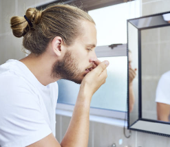 4. 손바닥으로 입과 코를 감싸보기: 두 손바닥으로 입과 코를 감싸고 숨을 내쉬어 손바닥 안에 숨을 모아줍니다. 그리고 손바닥에서 코로 숨을 들이마셔서 냄새를 맡아봅니다. 손바닥 안에 냄새가 난다면 입냄새가 있는 것입니다.