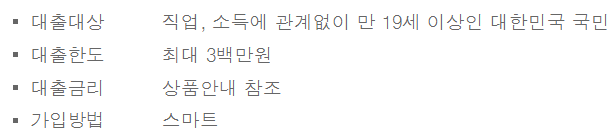 대출한도는 최소 50만원 이상부터 최대 300만원까지 가능하며 어디나 그렇듯 신용등급에 따라 차등 적용됩니다.