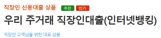 우리은행의 직장인 신용대출의 정식 명칭은 ' 우리 주거래 직장인대출 '입니다.