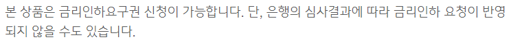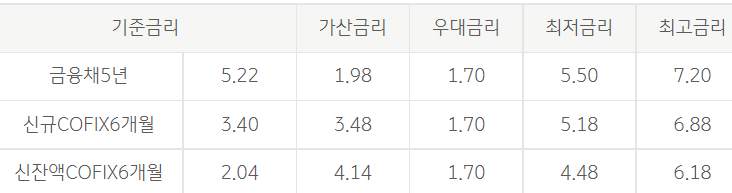 대출 최종 적용 금리는 기준금리 + 가산금리 - 우대금리를 적용하며 우대금리 조건은 최고 연 1.7%까지만 가능합니다.