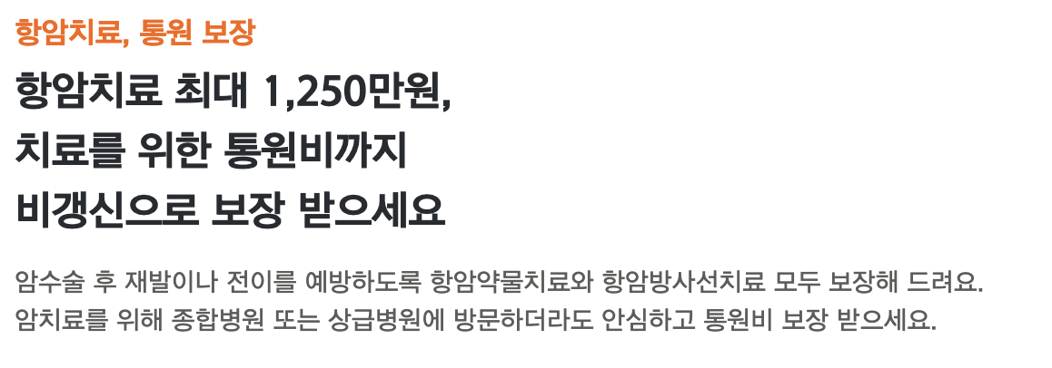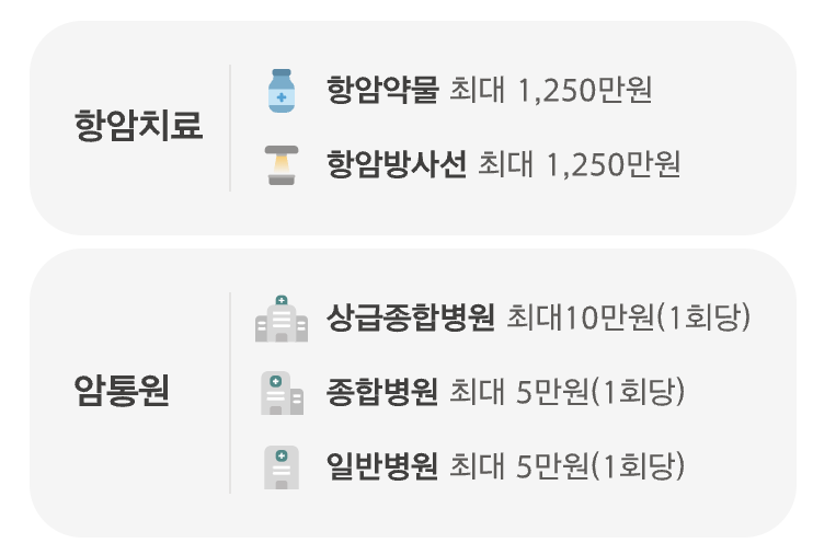 - 항암방사선치료비: 항암치료와 함께 방사선 치료를 받을 때 치료비를 지원합니다.