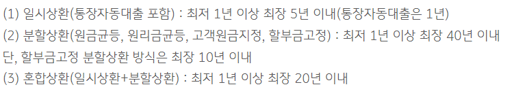 대출기간은 상환방법에따라 아래와 같이 달라집니다.