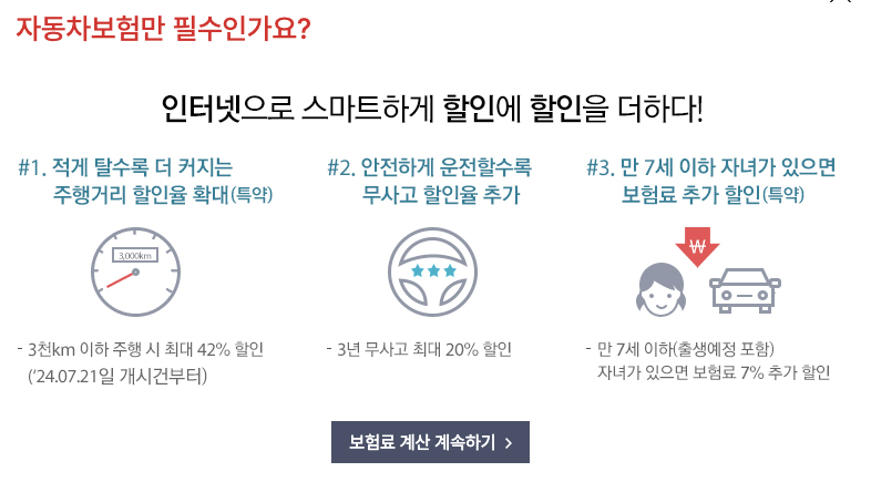 ✔ 주행거리, 무사고, 자녀 특약 등 다양한 할인 혜택 제공