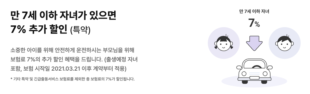 ✔ 만 7세 이하 자녀가 있거나, 출생 예정이라면 보험료 7% 할인!