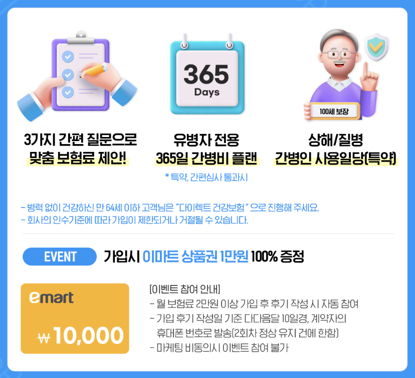 - 간병인이 필요할 경우 365일까지 보장 가능