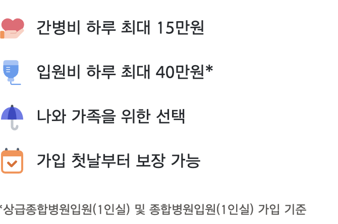 - 간병비 지급 기간이 길어 장기 입원 시 유리