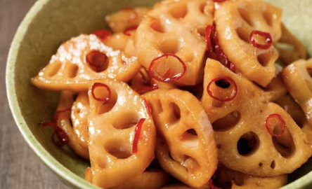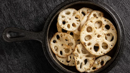 💡 연근은 껍질째 사용하는 것이 영양 성분을 더 풍부하게 섭취할 수 있는 방법이며, 식초물에 담가 변색 방지 후 요리에 사용하면 좋다.