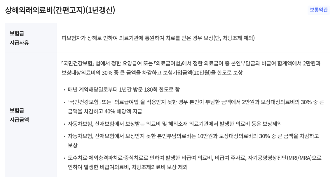 - 질병/상해 통원 의료비: 통원 치료 시 발생하는 의료비 보장