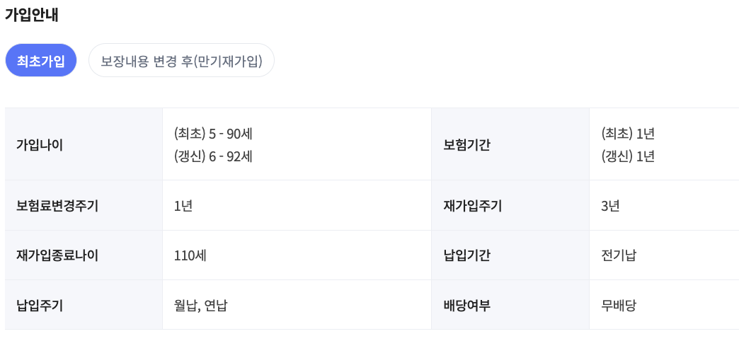 | 갱신 주기 | 1년 갱신형 (최대 100세까지 갱신 가능) |