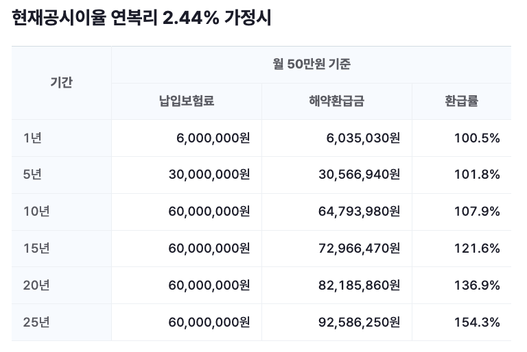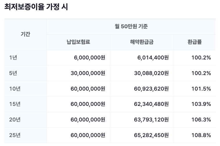 - 장기 유지 필수: 중도 해지 시 해약환급금이 원금보다 적을 수 있음