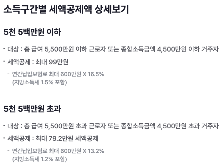- 연금저축보험 가입 시: 연간 최대 400만 원까지 세액공제 가능 (총급여 5,500만 원 이하 근로자 기준 최대 16.5% 절세)