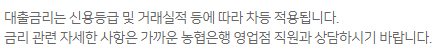 대출신청과 관련하여 더 자세한 사항을 알고 싶으시다면 위 상품설명서 및 아래 농협은행 고객행복센터 전화번호인 1661-3000/1522-3000으로 상담가능시간인 평일 09시부터 18시까지 상담 받을 수 있습니다.
