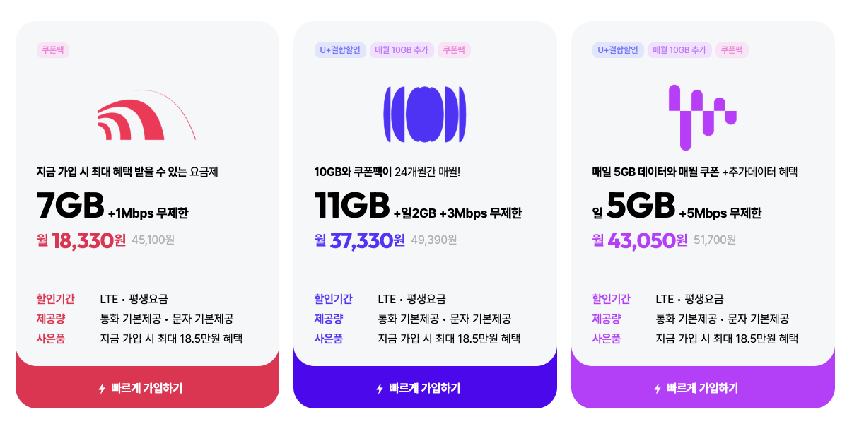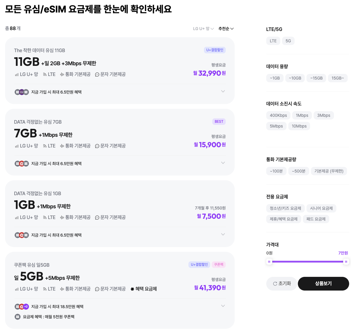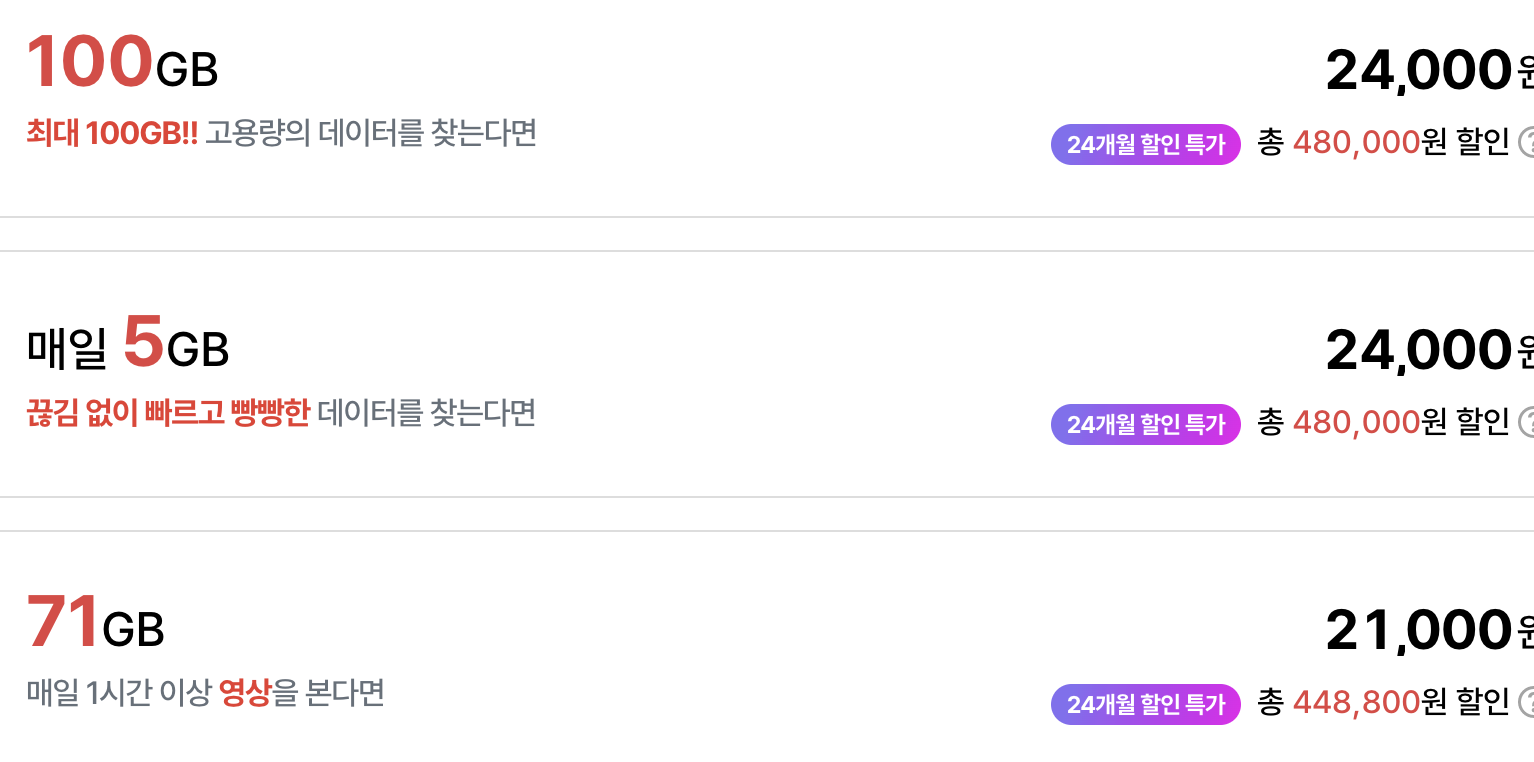 - 중간 금액대라 데이터 소모가 많은 날에는 부족할 수 있습니다.
