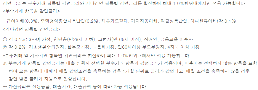 우대금리는 1% 적용이 가능하며 아래와 같습니다.