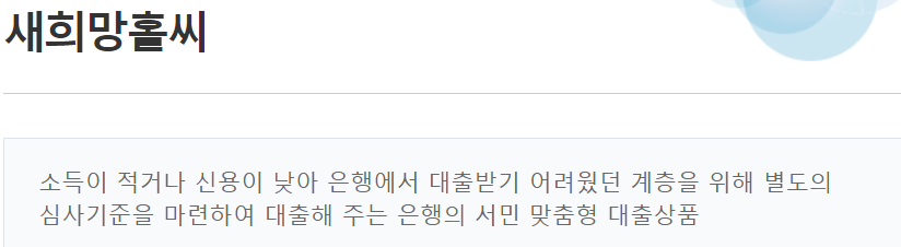 새희망홀씨 대출 조건 및 취급은행 정보 알아봅시다.