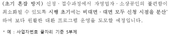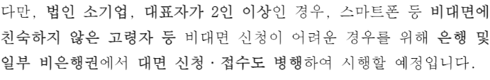 - 휴무,폐업 ,국세,지방세 체납, 금융기관 연체 등의 경우에는 상환 능력 등을 감안하여 정상 차주로 보기 어려워 신청 불가