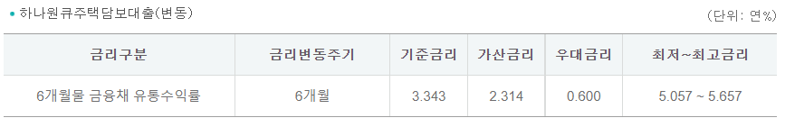 정식이름은 '하나원큐 주택담보대출'입니다.