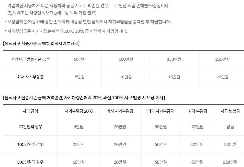대물배상 = 다른 사람의 자동차 및 재물에 손해를 입힌 경우를 보상